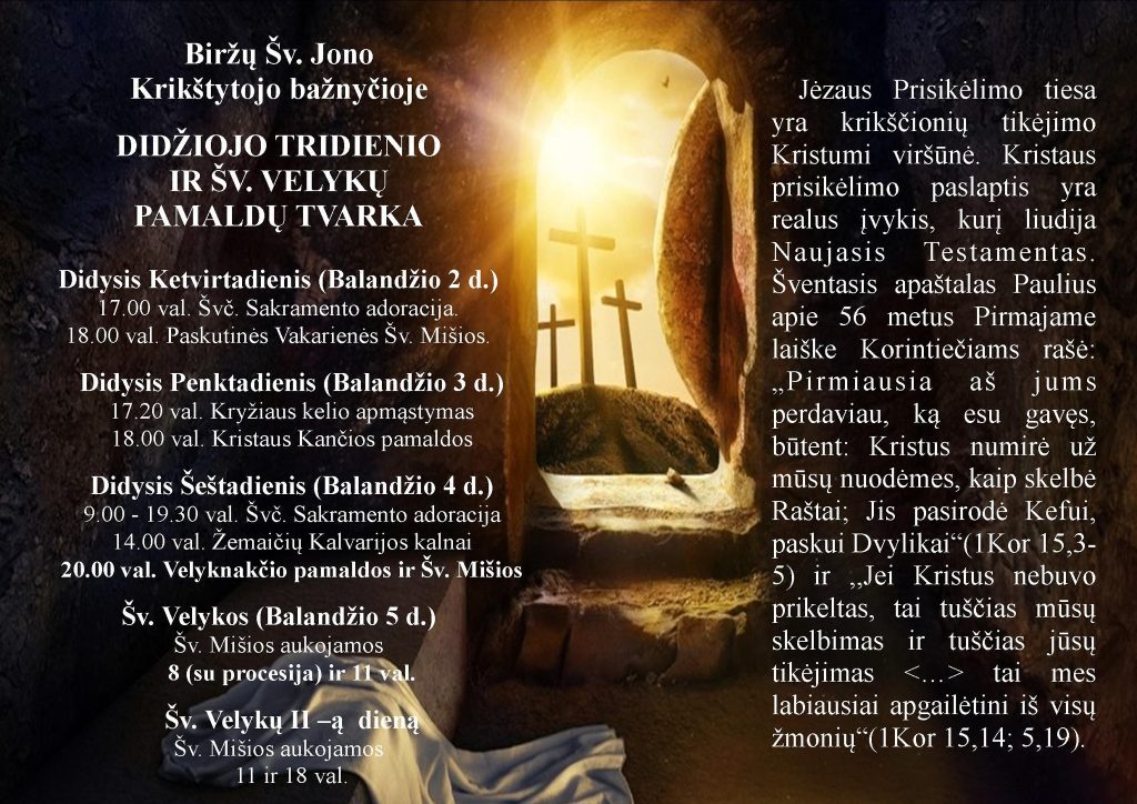 Kviečiame dalyvauti Didžiajame Velykų tridienyje.